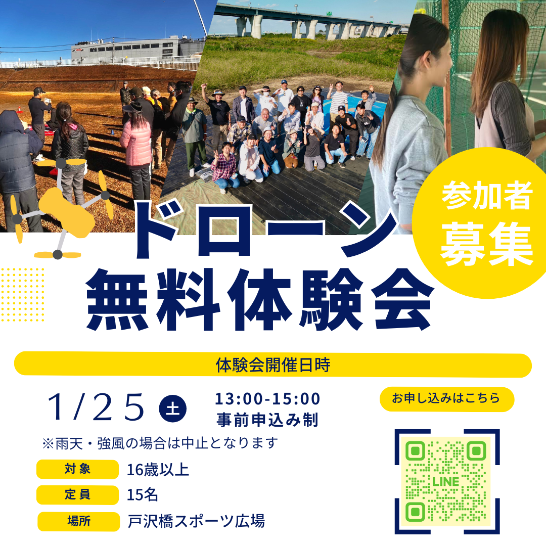 1月25日(土)に屋外でのドローン無料体験会を行います。